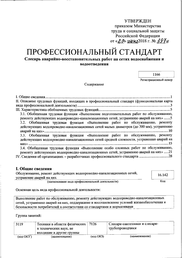 "ОБ УТВЕРЖДЕНИИ ПРОФЕССИОНАЛЬНОГО СТАНДАРТА "СЛЕСАРЬ АВАРИЙНО - ВОССТАНОВИТЕЛЬНЫХ РАБОТ НА СЕТЯХ ВОДОСНАБЖЕНИЯ И ВОДООТВЕДЕНИЯ"