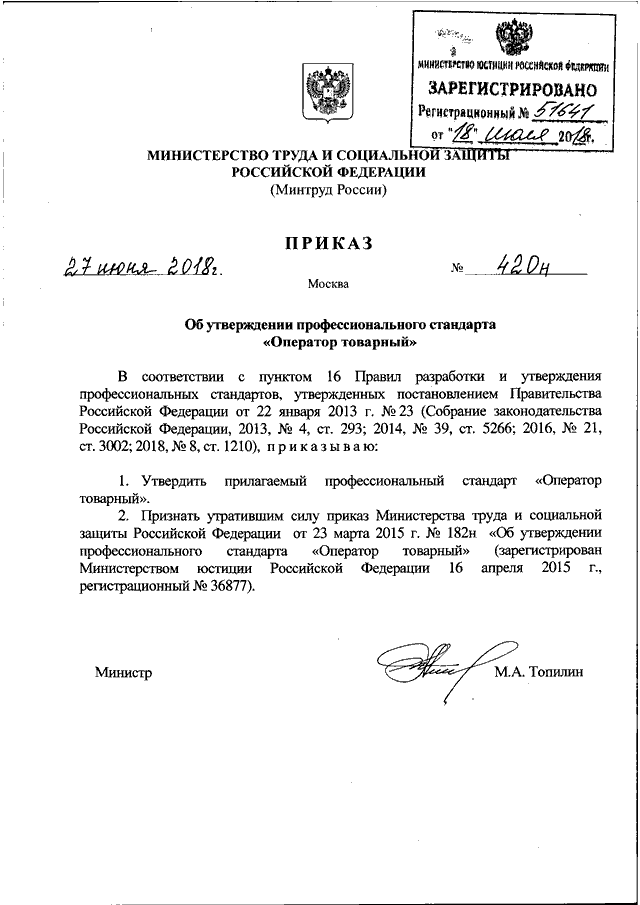ПРИКАЗ Минтруда РФ от 27.06.2018 N 420н