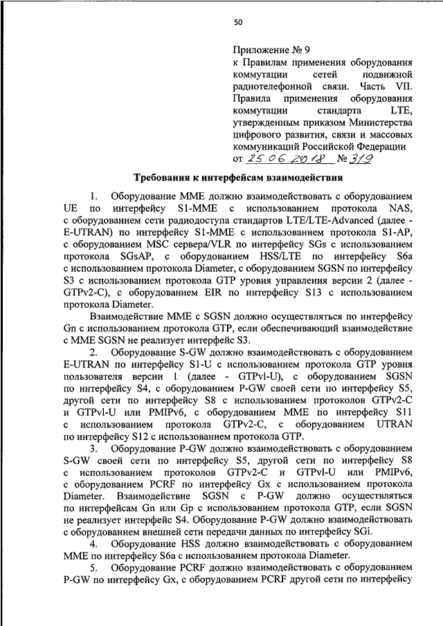 "ОБ УТВЕРЖДЕНИИ ПРАВИЛ ПРИМЕНЕНИЯ ОБОРУДОВАНИЯ КОММУТАЦИИ СЕТЕЙ ПОДВИЖНОЙ РАДИОТЕЛЕФОННОЙ СВЯЗИ. ЧАСТЬ VII. ПРАВИЛА ПРИМЕНЕНИЯ ОБОРУДОВАНИЯ КОММУТАЦИИ СТАНДАРТА LTE"