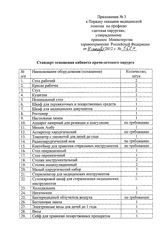 ПРИКАЗ Минздрава РФ от 31.10.2012 N 562н