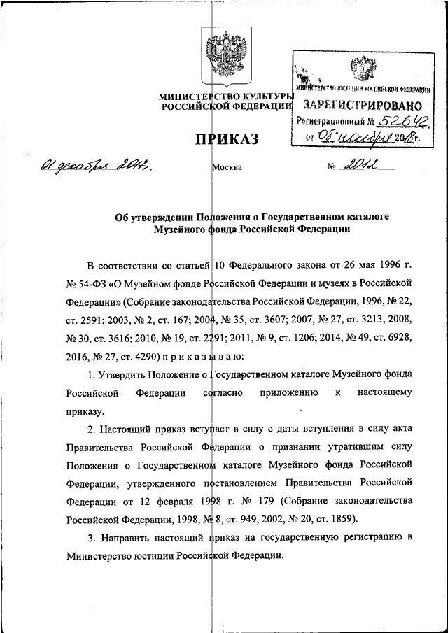 "ОБ УТВЕРЖДЕНИИ ПОЛОЖЕНИЯ О ГОСУДАРСТВЕННОМ КАТАЛОГЕ МУЗЕЙНОГО ФОНДА РОССИЙСКОЙ ФЕДЕРАЦИИ"