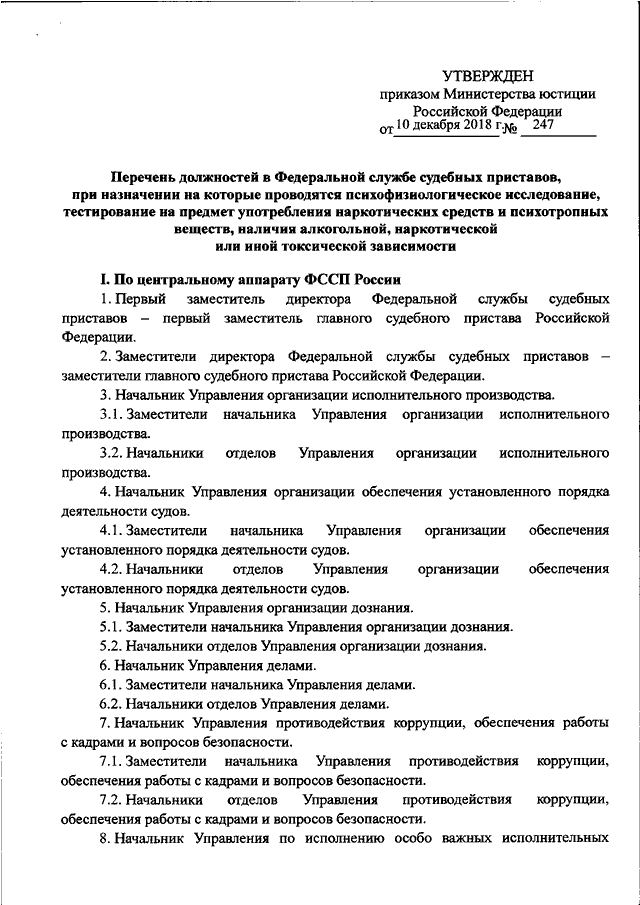 ПРИКАЗ Минюста РФ от 10.12.2018 N 247