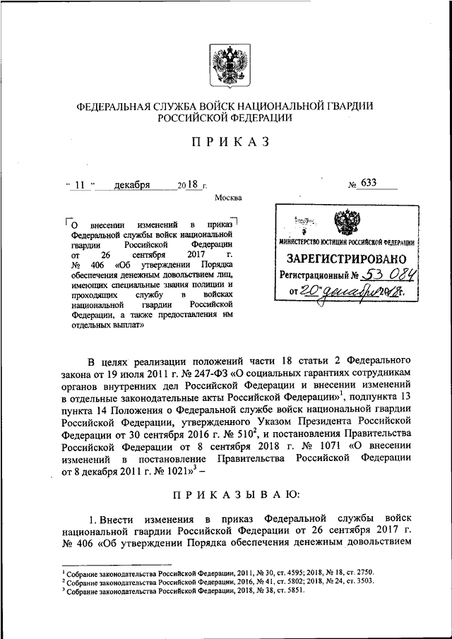 ПРИКАЗ Росгвардии от 11.12.2018 N 633