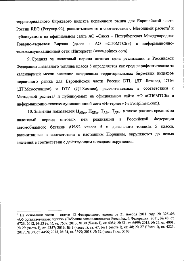 "ОБ УТВЕРЖДЕНИИ ПОРЯДКА РАСЧЕТА ПОКАЗАТЕЛЕЙ Ц.АБРТ, Ц.ДТРТ, Т.АБМ, Т.ДТМ, А ТАКЖЕ РАСЧЕТА СРЕДНИХ ЗА НАЛОГОВЫЙ ПЕРИОД ОПТОВЫХ ЦЕН РЕАЛИЗАЦИИ В РОССИЙСКОЙ ФЕДЕРАЦИИ АВТОМОБИЛЬНОГО БЕНЗИНА АИ-92 КЛАССА 5 И ДИЗЕЛЬНОГО ТОПЛИВА 5 КЛАССА"
