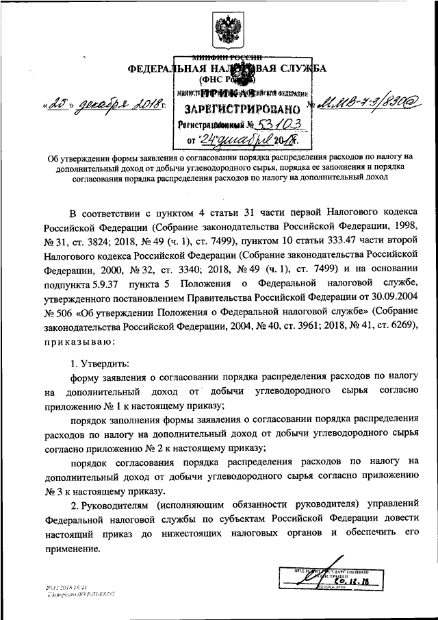 ПРИКАЗ ФНС РФ от 20.12.2018 N ММВ-7-3/830@