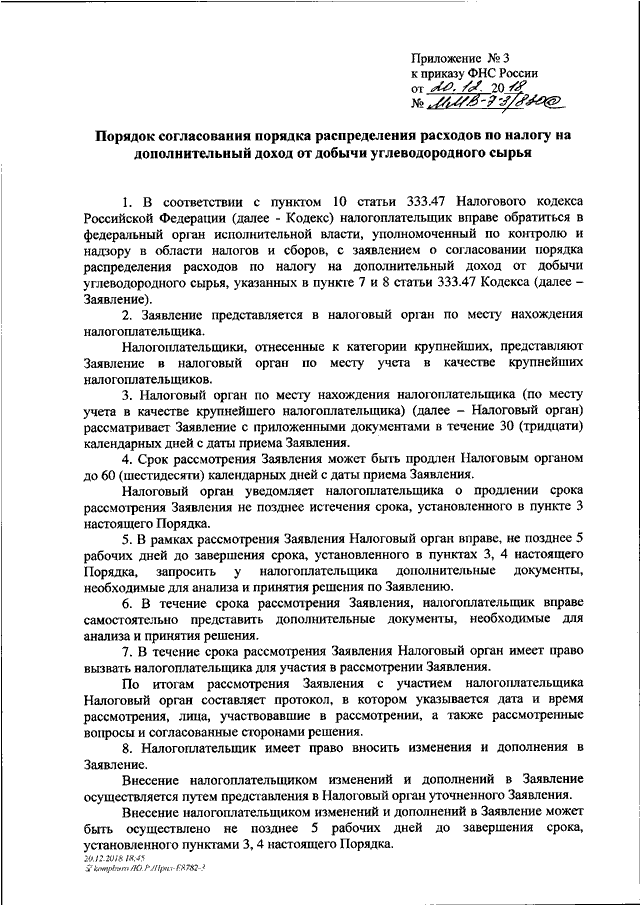 "ОБ УТВЕРЖДЕНИИ ФОРМЫ ЗАЯВЛЕНИЯ О СОГЛАСОВАНИИ ПОРЯДКА РАСПРЕДЕЛЕНИЯ РАСХОДОВ ПО НАЛОГУ НА ДОПОЛНИТЕЛЬНЫЙ ДОХОД ОТ ДОБЫЧИ УГЛЕВОДОРОДНОГО СЫРЬЯ, ПОРЯДКА ЕЕ ЗАПОЛНЕНИЯ И ПОРЯДКА СОГЛАСОВАНИЯ ПОРЯДКА РАСПРЕДЕЛЕНИЯ РАСХОДОВ ПО НАЛОГУ НА ДОПОЛНИТЕЛЬНЫЙ ДОХОД"