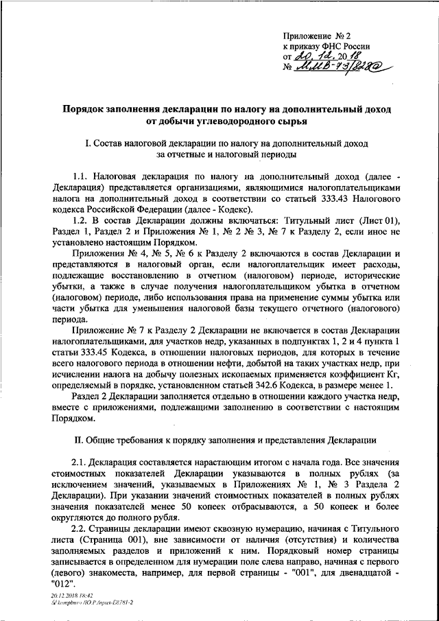 "ОБ УТВЕРЖДЕНИИ ФОРМЫ НАЛОГОВОЙ ДЕКЛАРАЦИИ ПО НАЛОГУ НА ДОПОЛНИТЕЛЬНЫЙ ДОХОД ОТ ДОБЫЧИ УГЛЕВОДОРОДНОГО СЫРЬЯ, ПОРЯДКА ЕЕ ЗАПОЛНЕНИЯ, А ТАКЖЕ ФОРМАТА ПРЕДСТАВЛЕНИЯ НАЛОГОВОЙ ДЕКЛАРАЦИИ ПО НАЛОГУ НА ДОПОЛНИТЕЛЬНЫЙ ДОХОД ОТ ДОБЫЧИ УГЛЕВОДОРОДНОГО СЫРЬЯ В ЭЛЕКТРОННОЙ ФОРМЕ"