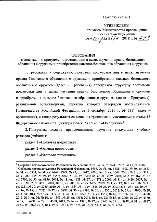 "ОБ УТВЕРЖДЕНИИ ТРЕБОВАНИЙ К СОДЕРЖАНИЮ ПРОГРАММ ПОДГОТОВКИ ЛИЦ В ЦЕЛЯХ ИЗУЧЕНИЯ ПРАВИЛ БЕЗОПАСНОГО ОБРАЩЕНИЯ С ОРУЖИЕМ И ПРИОБРЕТЕНИЯ НАВЫКОВ БЕЗОПАСНОГО ОБРАЩЕНИЯ С ОРУЖИЕМ И ПОРЯДКА СОГЛАСОВАНИЯ ПРОГРАММ ПОДГОТОВКИ ЛИЦ В ЦЕЛЯХ ИЗУЧЕНИЯ ПРАВИЛ БЕЗОПАСНОГО ОБРАЩЕНИЯ С ОРУЖИЕМ И ПРИОБРЕТЕНИЯ НАВЫКОВ БЕЗОПАСНОГО ОБРАЩЕНИЯ С ОРУЖИЕМ"