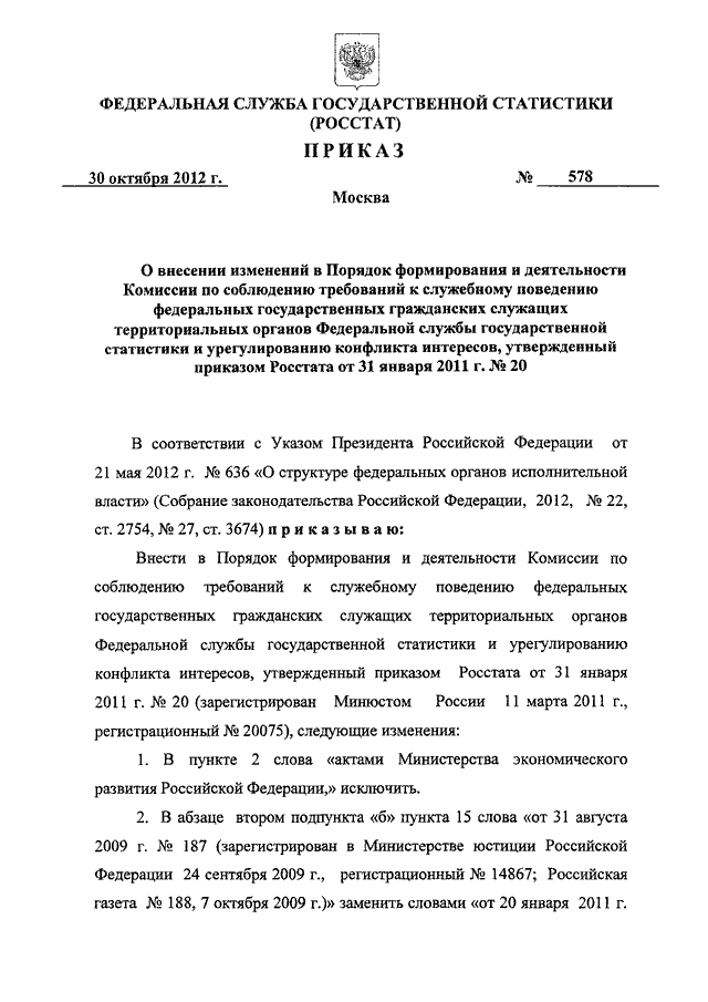 ПРИКАЗ Росстата от 30.10.2012 N 578