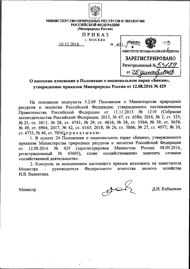 ПРИКАЗ Минприроды РФ от 10.12.2018 N 651