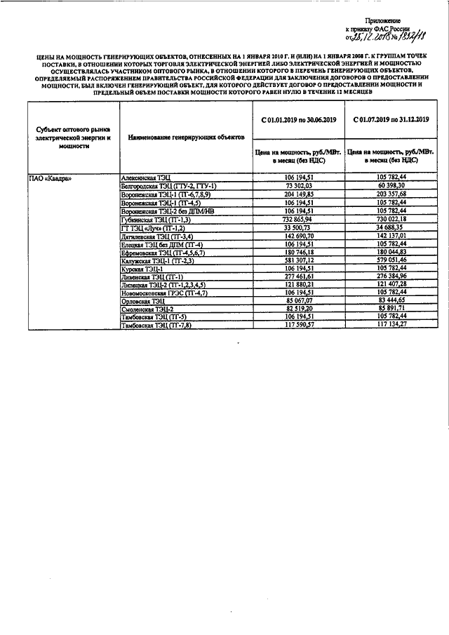 "ОБ УТВЕРЖДЕНИИ ЦЕН НА МОЩНОСТЬ ГЕНЕРИРУЮЩИХ ОБЪЕКТОВ, ОТНЕСЕННЫХ