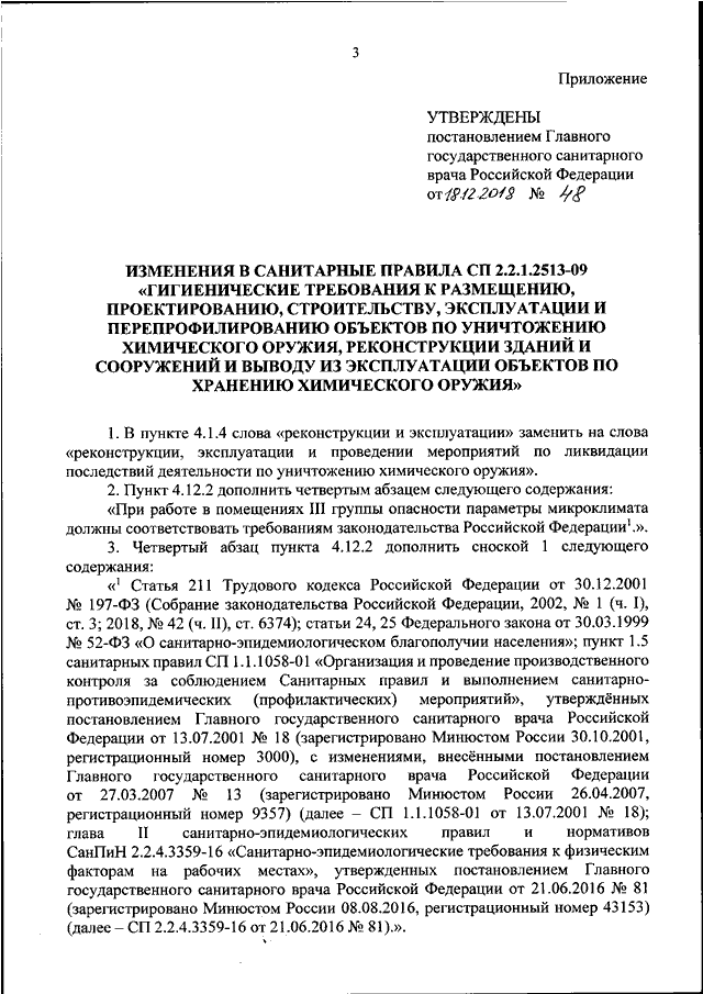 ПОСТАНОВЛЕНИЕ Главного государственного санитарного врача РФ от 18.12.2018 N 48