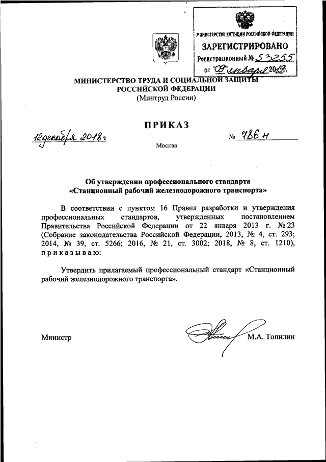 ПРИКАЗ Минтруда РФ от 12.12.2018 N 786н