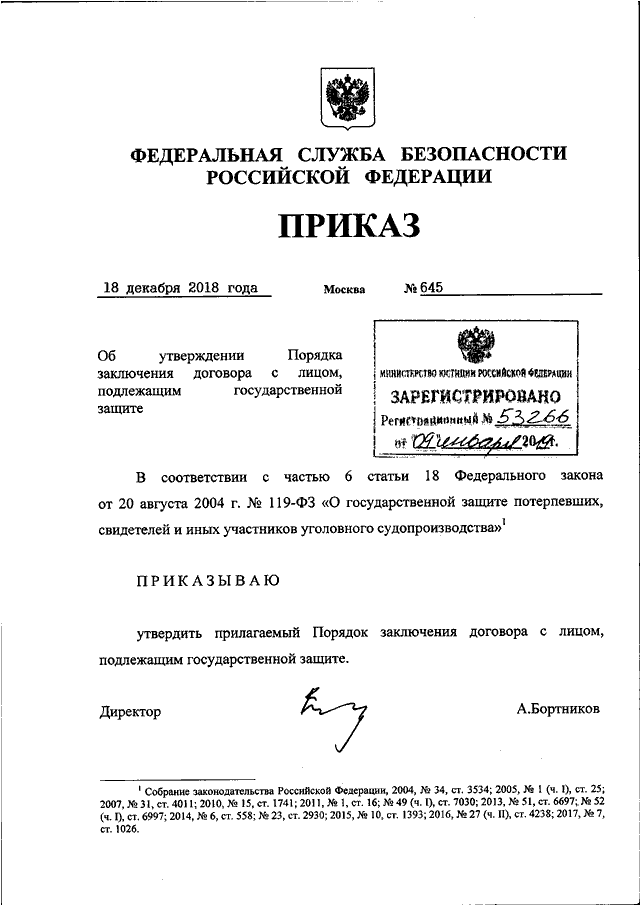 ПРИКАЗ ФСБ РФ от 18.12.2018 N 645