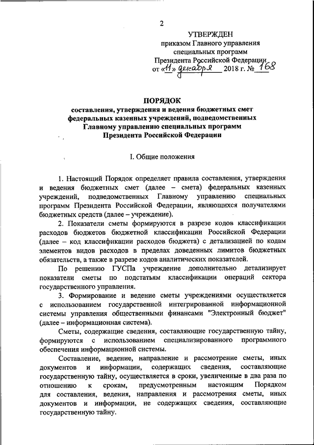 ПРИКАЗ ГУСП от 11.12.2018 N 168