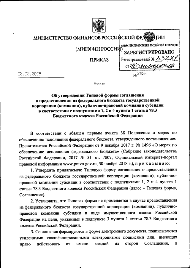 ПРИКАЗ Минфина РФ от 13.12.2018 N 263н
