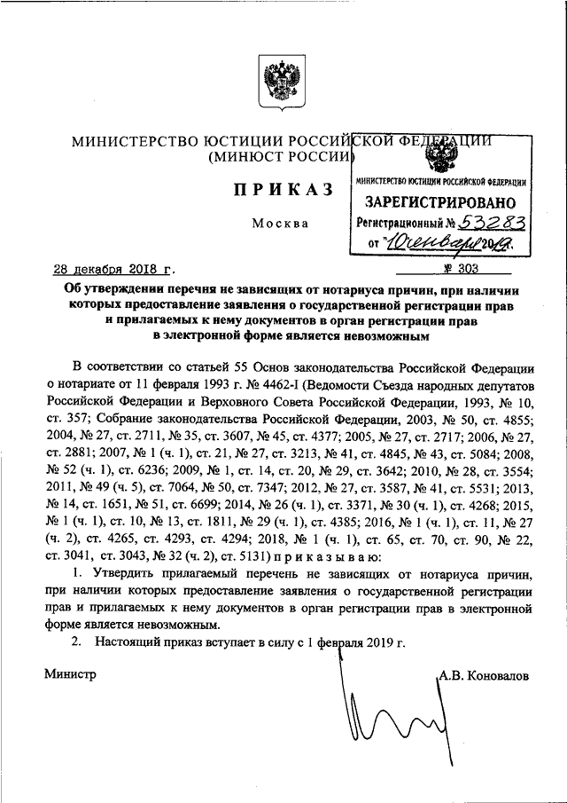 ПРИКАЗ Минюста РФ от 28.12.2018 N 303