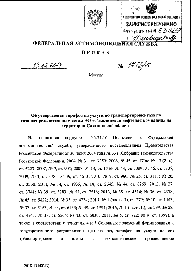 ПРИКАЗ Федеральной антимонопольной службы от 13.12.2018 N 1753/18