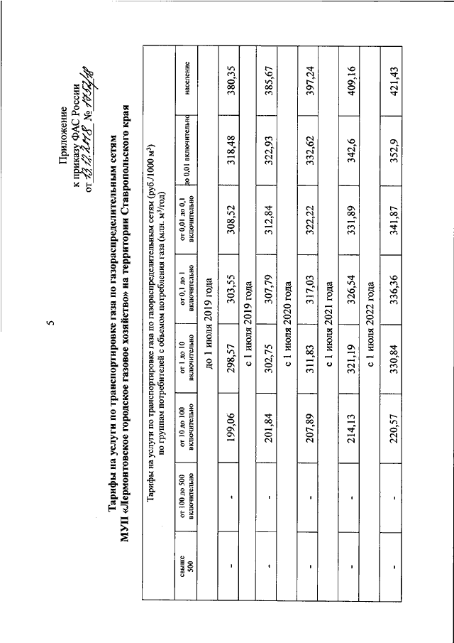 "ОБ УТВЕРЖДЕНИИ ТАРИФОВ НА УСЛУГИ ПО ТРАНСПОРТИРОВКЕ ГАЗА ПО ГАЗОРАСПРЕДЕЛИТЕЛЬНЫМ СЕТЯМ МУП "ЛЕРМОНТОВСКОЕ ГОРОДСКОЕ ГАЗОВОЕ ХОЗЯЙСТВО" НА ТЕРРИТОРИИ СТАВРОПОЛЬСКОГО КРАЯ"