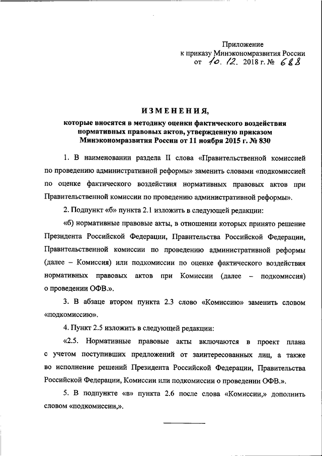 ПРИКАЗ Минэкономразвития РФ от 10.12.2018 N 688