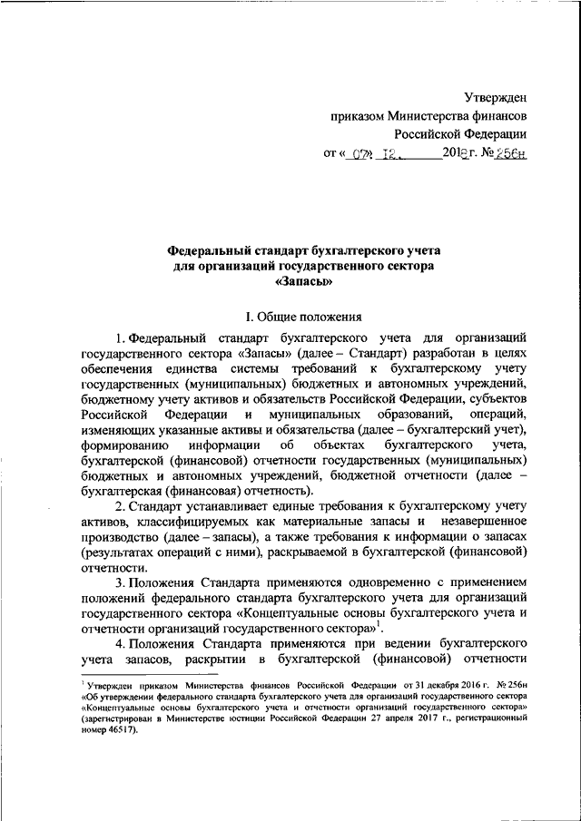"ОБ УТВЕРЖДЕНИИ ФЕДЕРАЛЬНОГО СТАНДАРТА БУХГАЛТЕРСКОГО УЧЕТА ДЛЯ ОРГАНИЗАЦИЙ ГОСУДАРСТВЕННОГО СЕКТОРА "ЗАПАСЫ"