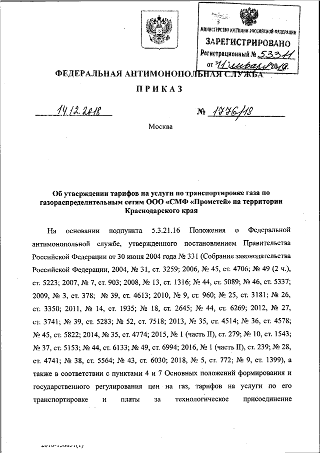 ПРИКАЗ Федеральной антимонопольной службы от 14.12.2018 N 1776/18