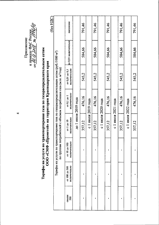 "ОБ УТВЕРЖДЕНИИ ТАРИФОВ НА УСЛУГИ ПО ТРАНСПОРТИРОВКЕ ГАЗА ПО ГАЗОРАСПРЕДЕЛИТЕЛЬНЫМ СЕТЯМ ООО "СМФ "ПРОМЕТЕЙ" НА ТЕРРИТОРИИ КРАСНОДАРСКОГО КРАЯ"
