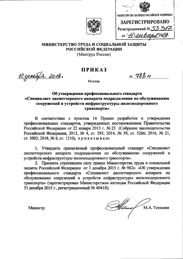 ПРИКАЗ Минтруда РФ от 12.12.2018 N 788н