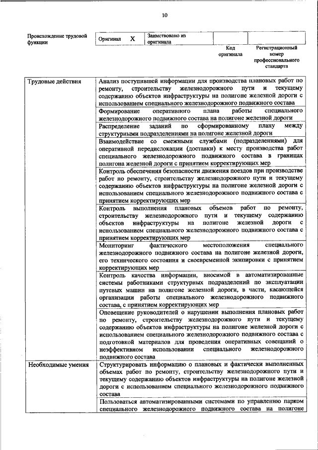 "ОБ УТВЕРЖДЕНИИ ПРОФЕССИОНАЛЬНОГО СТАНДАРТА "СПЕЦИАЛИСТ ДИСПЕТЧЕРСКОГО АППАРАТА ПОДРАЗДЕЛЕНИЯ ПО ОБСЛУЖИВАНИЮ СООРУЖЕНИЙ И УСТРОЙСТВ ИНФРАСТРУКТУРЫ ЖЕЛЕЗНОДОРОЖНОГО ТРАНСПОРТА"