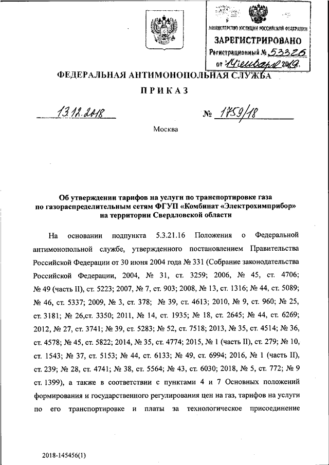 ПРИКАЗ Федеральной антимонопольной службы от 13.12.2018 N 1759/18