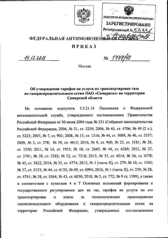ПРИКАЗ Федеральной антимонопольной службы от 14.12.2018 N 1777/18