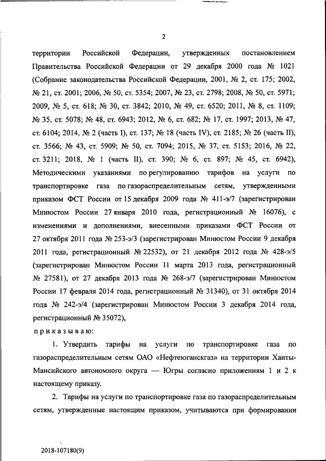 "ОБ УТВЕРЖДЕНИИ ТАРИФОВ НА УСЛУГИ ПО ТРАНСПОРТИРОВКЕ ГАЗА ПО ГАЗОРАСПРЕДЕЛИТЕЛЬНЫМ СЕТЯМ ОАО "НЕФТЕЮГАНСКГАЗ" НА ТЕРРИТОРИИ ХАНТЫ-МАНСИЙСКОГО АВТОНОМНОГО ОКРУГА - ЮГРЫ"