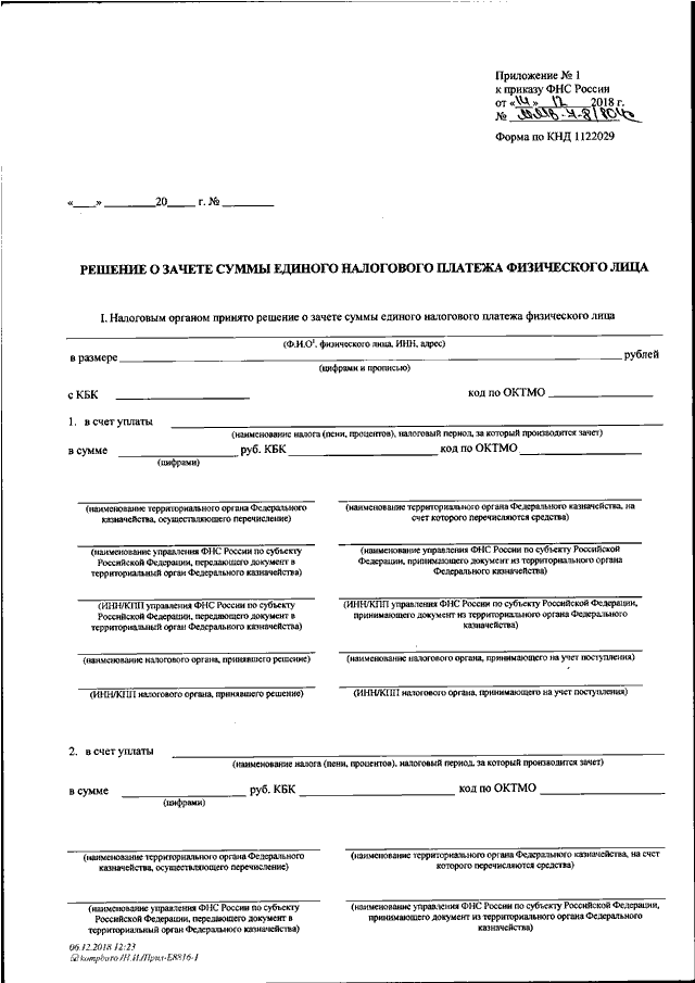 "ОБ УТВЕРЖДЕНИИ ФОРМ ДОКУМЕНТОВ, ИСПОЛЬЗУЕМЫХ НАЛОГОВЫМИ ОРГАНАМИ ПРИ ОСУЩЕСТВЛЕНИИ ЗАЧЕТА И ВОЗВРАТА СУММЫ ЕДИНОГО НАЛОГОВОГО ПЛАТЕЖА ФИЗИЧЕСКОГО ЛИЦА И ФОРМАТА ПРЕДСТАВЛЕНИЯ ЗАЯВЛЕНИЯ О ВОЗВРАТЕ ДЕНЕЖНЫХ СРЕДСТВ, ПЕРЕЧИСЛЕННЫХ В БЮДЖЕТНУЮ СИСТЕМУ РОССИЙСКОЙ ФЕДЕРАЦИИ В КАЧЕСТВЕ ЕДИНОГО НАЛОГОВОГО ПЛАТЕЖА ФИЗИЧЕСКОГО ЛИЦА, В ЭЛЕКТРОННОЙ ФОРМЕ"