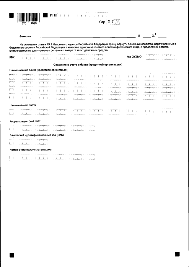 "ОБ УТВЕРЖДЕНИИ ФОРМ ДОКУМЕНТОВ, ИСПОЛЬЗУЕМЫХ НАЛОГОВЫМИ ОРГАНАМИ ПРИ ОСУЩЕСТВЛЕНИИ ЗАЧЕТА И ВОЗВРАТА СУММЫ ЕДИНОГО НАЛОГОВОГО ПЛАТЕЖА ФИЗИЧЕСКОГО ЛИЦА И ФОРМАТА ПРЕДСТАВЛЕНИЯ ЗАЯВЛЕНИЯ О ВОЗВРАТЕ ДЕНЕЖНЫХ СРЕДСТВ, ПЕРЕЧИСЛЕННЫХ В БЮДЖЕТНУЮ СИСТЕМУ РОССИЙСКОЙ ФЕДЕРАЦИИ В КАЧЕСТВЕ ЕДИНОГО НАЛОГОВОГО ПЛАТЕЖА ФИЗИЧЕСКОГО ЛИЦА, В ЭЛЕКТРОННОЙ ФОРМЕ"