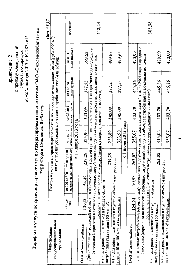 ПРИКАЗ ФСТ РФ от 27.11.2012 N 287-э/15