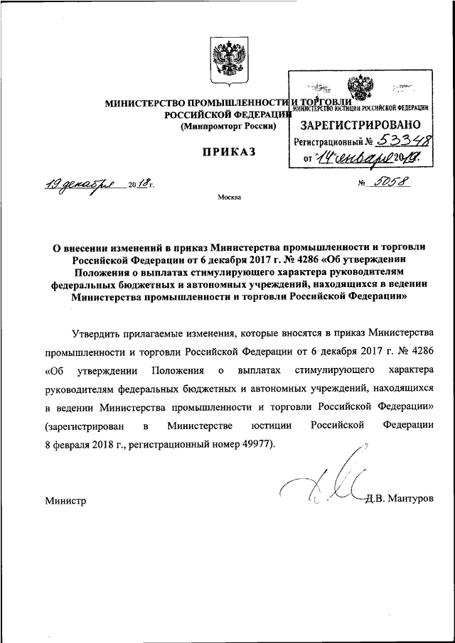 ПРИКАЗ Минпромторга РФ от 19.12.2018 N 5058