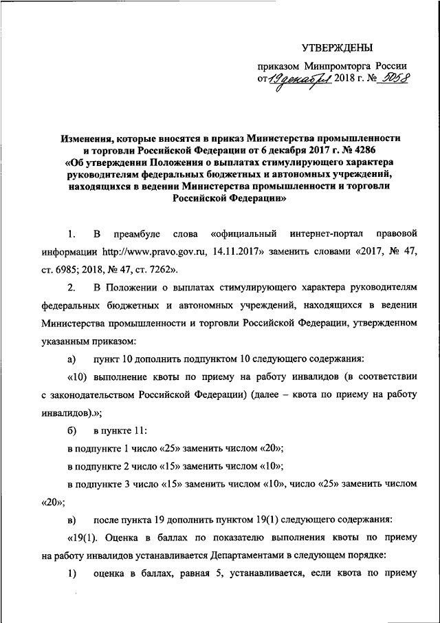 ПРИКАЗ Минпромторга РФ от 19.12.2018 N 5058