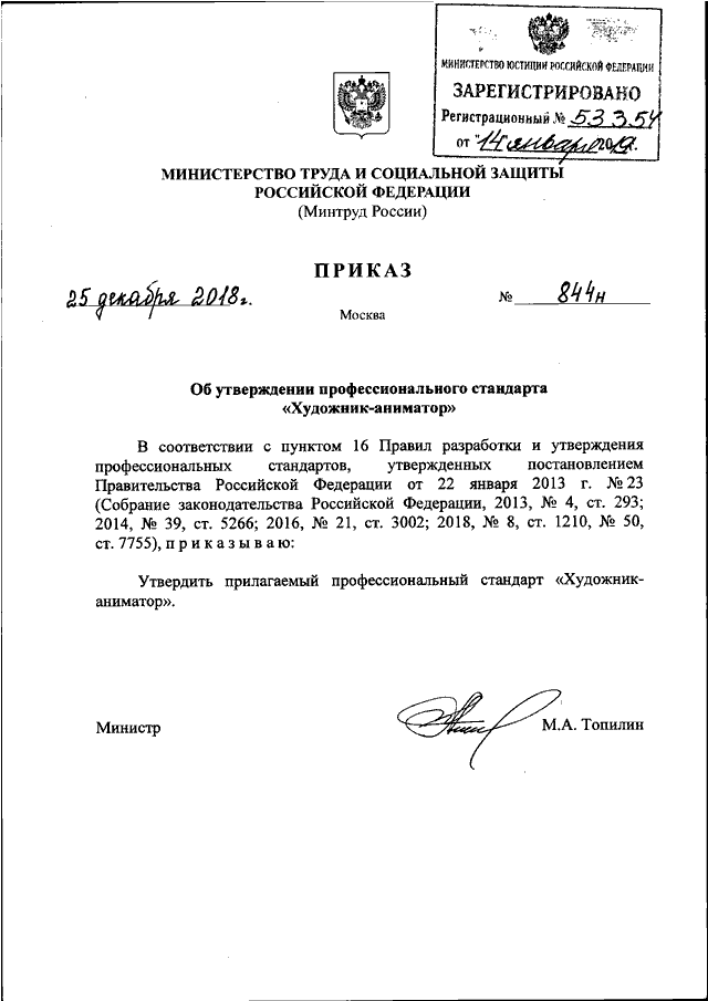 ПРИКАЗ Минтруда РФ от 25.12.2018 N 844н