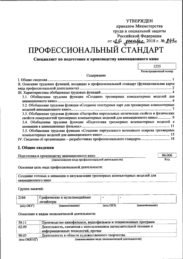 "ОБ УТВЕРЖДЕНИИ ПРОФЕССИОНАЛЬНОГО СТАНДАРТА "СПЕЦИАЛИСТ ПО ПОДГОТОВКЕ К ПРОИЗВОДСТВУ АНИМАЦИОННОГО КИНО"