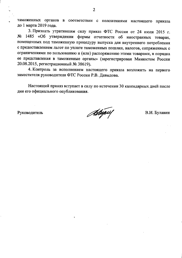 ПРИКАЗ ФТС РФ от 10.12.2018 N 2002