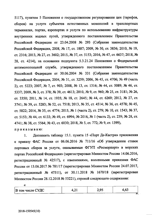 "О ВНЕСЕНИИ ИЗМЕНЕНИЙ В ПРИЛОЖЕНИЕ К ПРИКАЗУ ФАС РОССИИ ОТ 06.06.2016 N 711/16 "ОБ УТВЕРЖДЕНИИ СТАВОК ПОРТОВЫХ СБОРОВ ЗА УСЛУГИ, ОКАЗЫВАЕМЫЕ ФГУП "РОСМОРПОРТ" В МОРСКИХ ПОРТАХ РОССИЙСКОЙ ФЕДЕРАЦИИ"