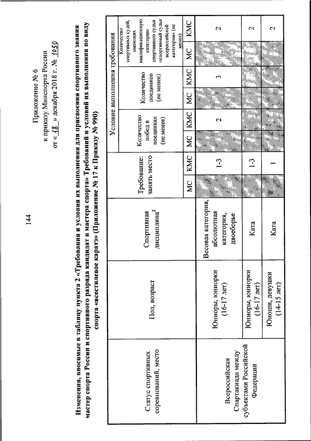 ПРИКАЗ Минспорта РФ от 18.12.2018 N 1050