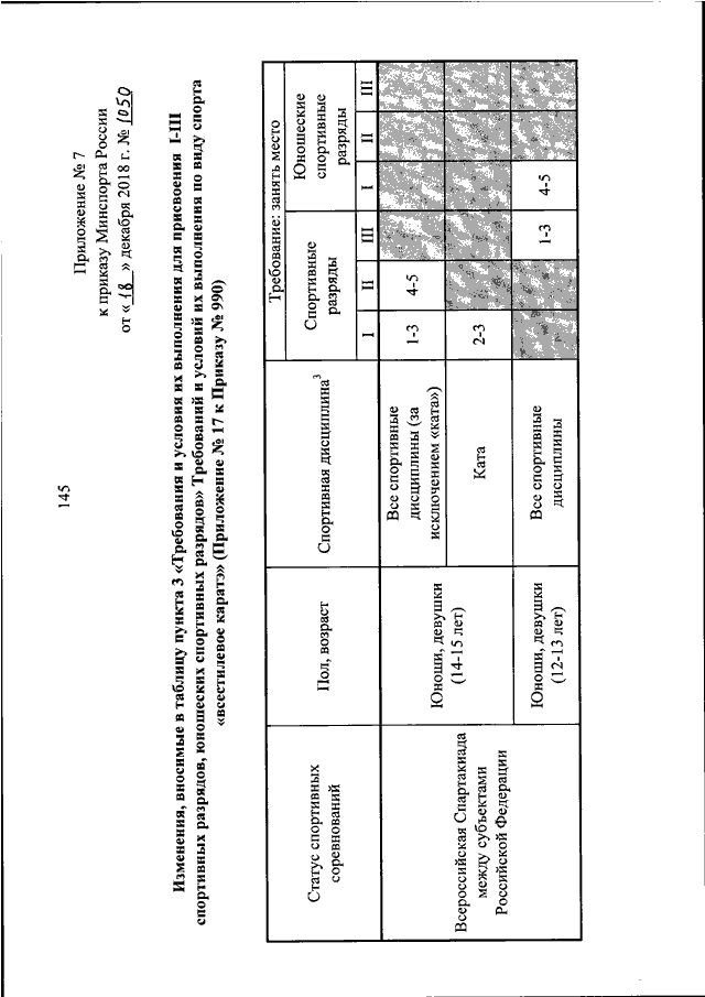 "О ВНЕСЕНИИ ИЗМЕНЕНИЙ В ПРИКАЗ МИНСПОРТА РОССИИ ОТ 13 НОЯБРЯ 2017 Г. N 990 "ОБ УТВЕРЖДЕНИИ ЕДИНОЙ ВСЕРОССИЙСКОЙ СПОРТИВНОЙ КЛАССИФИКАЦИИ (ВИДЫ СПОРТА НЕ ВКЛЮЧЕННЫЕ В ПРОГРАММЫ ИГР ОЛИМПИАДЫ, ОЛИМПИЙСКИХ ЗИМНИХ ИГР, А ТАКЖЕ НЕ ЯВЛЯЮЩИЕСЯ ВОЕННО - ПРИКЛАДНЫМИ ИЛИ СЛУЖЕБНО - ПРИКЛАДНЫМИ ВИДАМИ СПОРТА)"