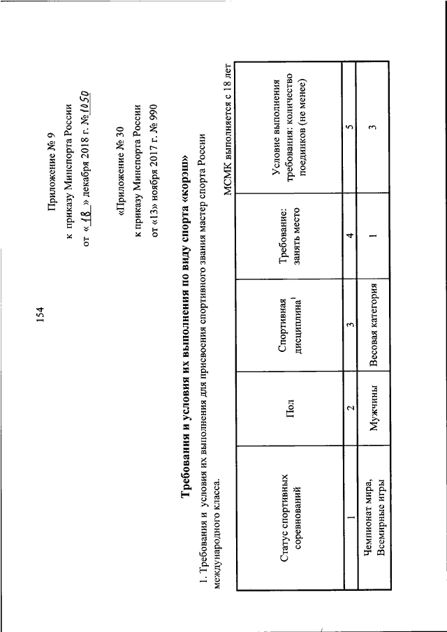 ПРИКАЗ Минспорта РФ от 18.12.2018 N 1050