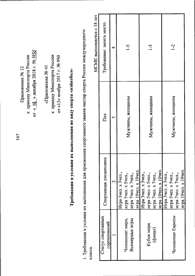 "О ВНЕСЕНИИ ИЗМЕНЕНИЙ В ПРИКАЗ МИНСПОРТА РОССИИ ОТ 13 НОЯБРЯ 2017 Г. N 990 "ОБ УТВЕРЖДЕНИИ ЕДИНОЙ ВСЕРОССИЙСКОЙ СПОРТИВНОЙ КЛАССИФИКАЦИИ (ВИДЫ СПОРТА НЕ ВКЛЮЧЕННЫЕ В ПРОГРАММЫ ИГР ОЛИМПИАДЫ, ОЛИМПИЙСКИХ ЗИМНИХ ИГР, А ТАКЖЕ НЕ ЯВЛЯЮЩИЕСЯ ВОЕННО - ПРИКЛАДНЫМИ ИЛИ СЛУЖЕБНО - ПРИКЛАДНЫМИ ВИДАМИ СПОРТА)"