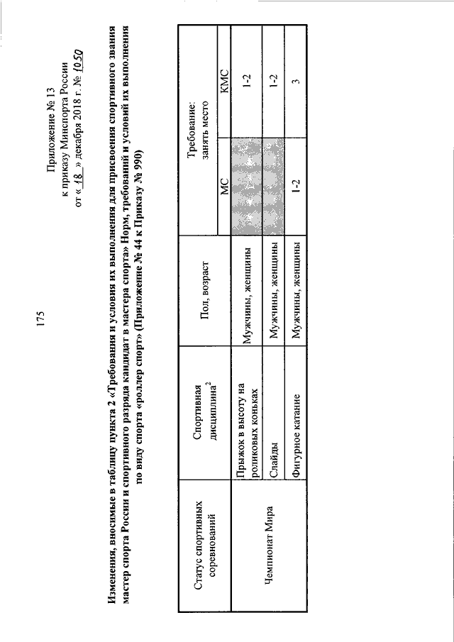 "О ВНЕСЕНИИ ИЗМЕНЕНИЙ В ПРИКАЗ МИНСПОРТА РОССИИ ОТ 13 НОЯБРЯ 2017 Г. N 990 "ОБ УТВЕРЖДЕНИИ ЕДИНОЙ ВСЕРОССИЙСКОЙ СПОРТИВНОЙ КЛАССИФИКАЦИИ (ВИДЫ СПОРТА НЕ ВКЛЮЧЕННЫЕ В ПРОГРАММЫ ИГР ОЛИМПИАДЫ, ОЛИМПИЙСКИХ ЗИМНИХ ИГР, А ТАКЖЕ НЕ ЯВЛЯЮЩИЕСЯ ВОЕННО - ПРИКЛАДНЫМИ ИЛИ СЛУЖЕБНО - ПРИКЛАДНЫМИ ВИДАМИ СПОРТА)"