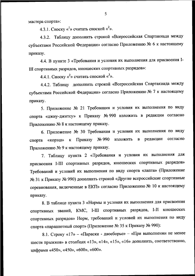"О ВНЕСЕНИИ ИЗМЕНЕНИЙ В ПРИКАЗ МИНСПОРТА РОССИИ ОТ 13 НОЯБРЯ 2017 Г. N 990 "ОБ УТВЕРЖДЕНИИ ЕДИНОЙ ВСЕРОССИЙСКОЙ СПОРТИВНОЙ КЛАССИФИКАЦИИ (ВИДЫ СПОРТА НЕ ВКЛЮЧЕННЫЕ В ПРОГРАММЫ ИГР ОЛИМПИАДЫ, ОЛИМПИЙСКИХ ЗИМНИХ ИГР, А ТАКЖЕ НЕ ЯВЛЯЮЩИЕСЯ ВОЕННО - ПРИКЛАДНЫМИ ИЛИ СЛУЖЕБНО - ПРИКЛАДНЫМИ ВИДАМИ СПОРТА)"