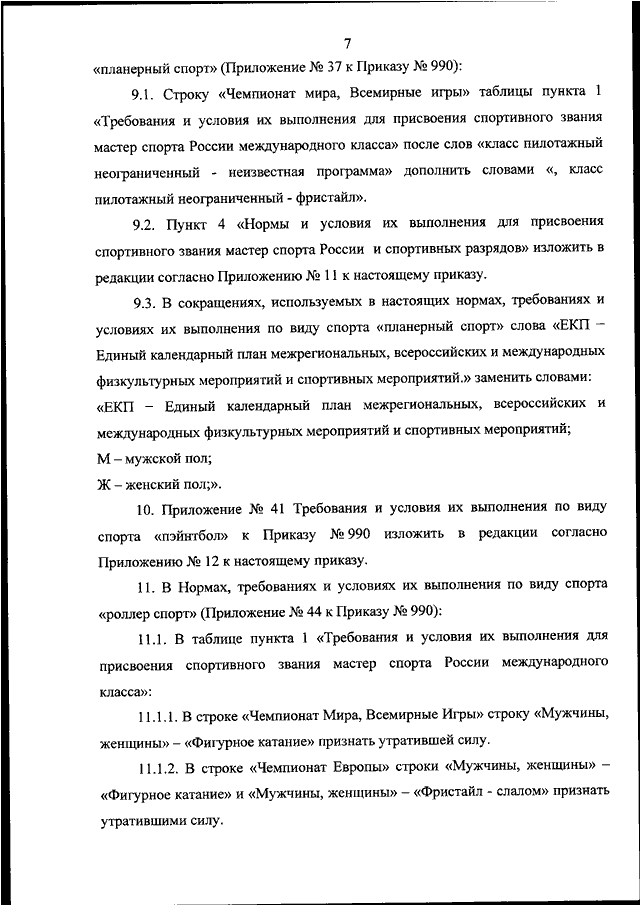 "О ВНЕСЕНИИ ИЗМЕНЕНИЙ В ПРИКАЗ МИНСПОРТА РОССИИ ОТ 13 НОЯБРЯ 2017 Г. N 990 "ОБ УТВЕРЖДЕНИИ ЕДИНОЙ ВСЕРОССИЙСКОЙ СПОРТИВНОЙ КЛАССИФИКАЦИИ (ВИДЫ СПОРТА НЕ ВКЛЮЧЕННЫЕ В ПРОГРАММЫ ИГР ОЛИМПИАДЫ, ОЛИМПИЙСКИХ ЗИМНИХ ИГР, А ТАКЖЕ НЕ ЯВЛЯЮЩИЕСЯ ВОЕННО - ПРИКЛАДНЫМИ ИЛИ СЛУЖЕБНО - ПРИКЛАДНЫМИ ВИДАМИ СПОРТА)"