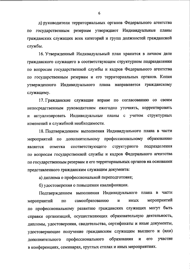 "О ПОРЯДКЕ УТВЕРЖДЕНИЯ ИНДИВИДУАЛЬНЫХ ПЛАНОВ ПРОФЕССИОНАЛЬНОГО РАЗВИТИЯ ФЕДЕРАЛЬНЫХ ГОСУДАРСТВЕННЫХ ГРАЖДАНСКИХ СЛУЖАЩИХ ФЕДЕРАЛЬНОГО АГЕНТСТВА ПО ГОСУДАРСТВЕННЫМ РЕЗЕРВАМ И ЕГО ТЕРРИТОРИАЛЬНЫХ ОРГАНОВ"