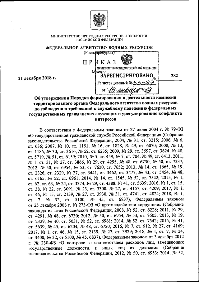 ПРИКАЗ Росводресурсов от 21.12.2018 N 282